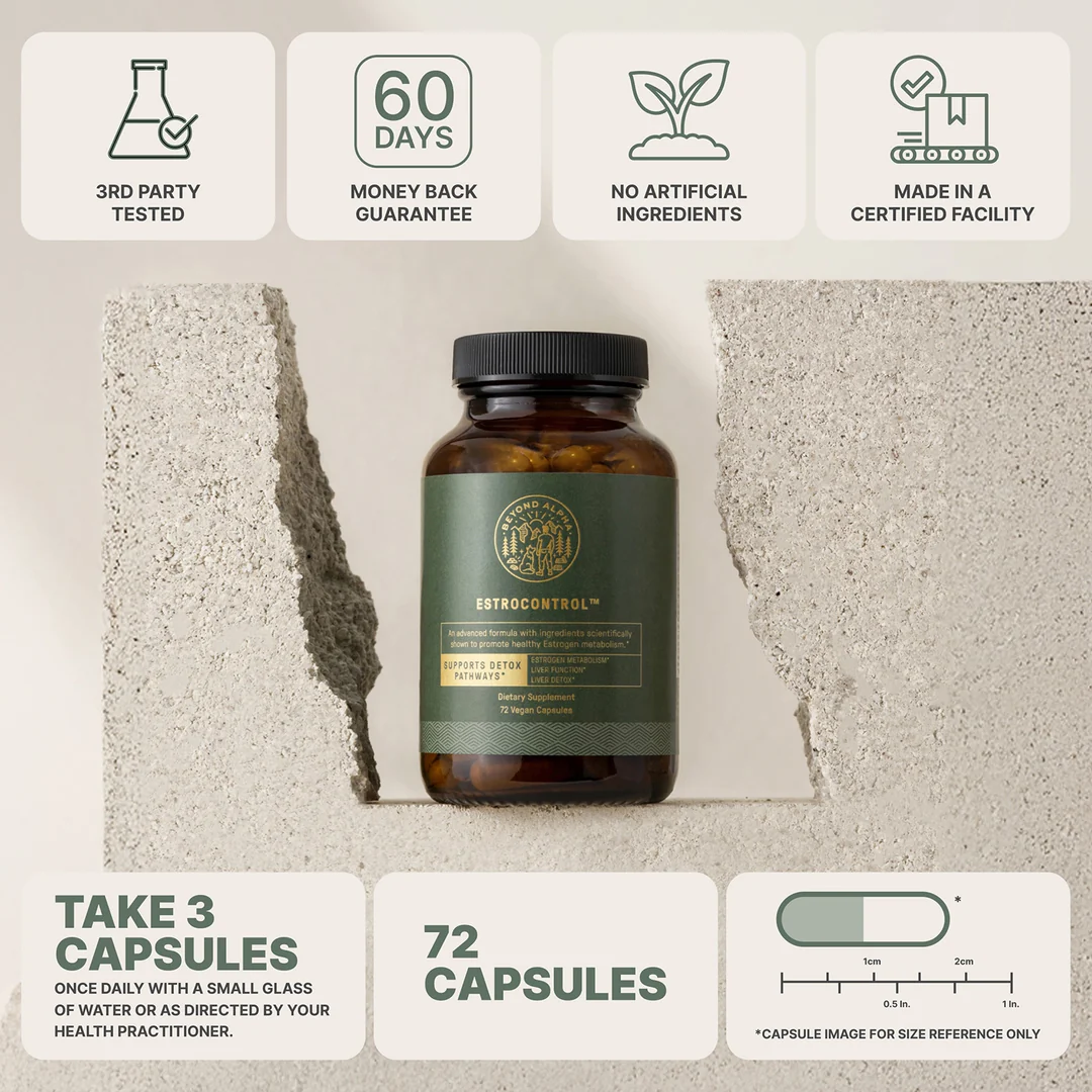 EstroControl is a natural formula that supports your liver's natural detoxificationprocesses to maintain healthy estrogen balance, promoting better energy, cognitivefunction, healthy weight management, and confidence.